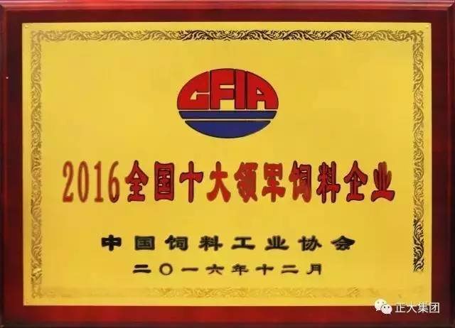 ▲正大集團(tuán)被中國(guó)飼料工業(yè)協(xié)會(huì)授予“2016全國(guó)十大領(lǐng)軍飼料企業(yè)”稱號(hào)